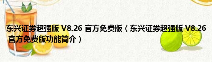东兴证券超强版 V8.26 官方免费版(东兴证券超强版 V8.26 官方免费版功能简介)