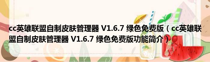 cc英雄联盟自制皮肤管理器 V1.6.7 绿色免费版(cc英雄联盟自制皮肤管理器 V1.6.7 绿色免费版功能简介)