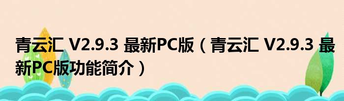 青云汇 V2.9.3 最新PC版(青云汇 V2.9.3 最新PC版功能简介)