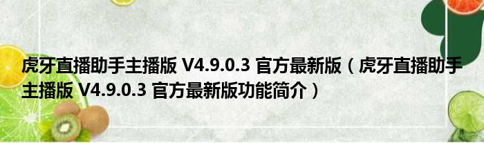虎牙直播助手主播版 V4.9.0.3 官方最新版(虎牙直播助手主播版 V4.9.0.3 官方最新版功能简介)