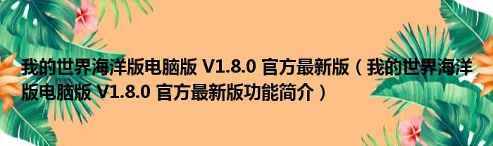 我的世界海洋版电脑版 V1.8.0 官方最新版(我的世界海洋版电脑版 V1.8.0 官方最新版功能简介)