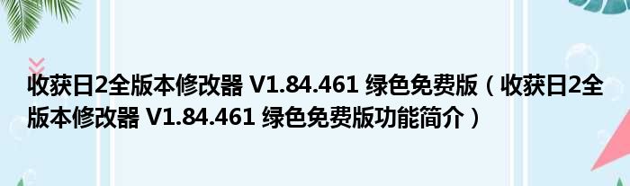 导读 大家好,关于收获日2全版本修改器 V1 84 461 绿色免费版,收获日2全版本修改器 V1 84 461 绿色免费版功能简介这个很多人还不知道,小勒来