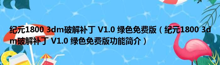 纪元1800 3dm破解补丁 V1.0 绿色免费版(纪元1800 3dm破解补丁 V1.0 绿色免费版功能简介)