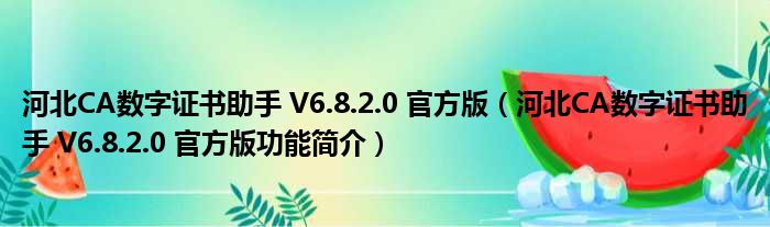 河北CA数字证书助手 V6.8.2.0 官方版(河北CA数字证书助手 V6.8.2.0 官方版功能简介)