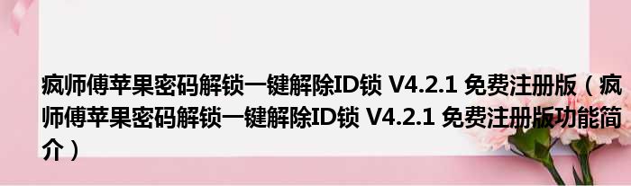 疯师傅苹果密码解锁一键解除ID锁 V4.2.1 免费注册版(疯师傅苹果密码解锁一键解除ID锁 V4.2.1 免费注册版功能简介)