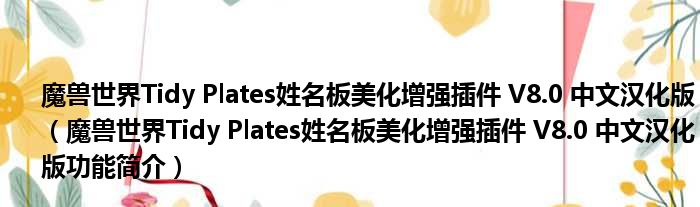 魔兽世界Tidy Plates姓名板美化增强插件 V8.0 中文汉化版(魔兽世界Tidy Plates姓名板美化增强插件 V8.0 中文汉化版功能简介)