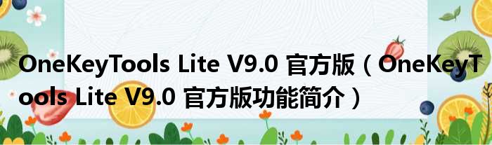 OneKeyTools Lite V9.0 官方版(OneKeyTools Lite V9.0 官方版功能简介)