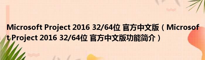 Microsoft Project 2016 32/64位 官方中文版(Microsoft Project 2016 32/64位 官方中文版功能简介)