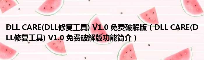 DLL CARE(DLL修复工具) V1.0 免费破解版(DLL CARE(DLL修复工具) V1.0 免费破解版功能简介)
