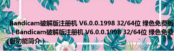 Bandicam破解版注册机 V6.0.0.1998 32/64位 绿色免费版(Bandicam破解版注册机 V6.0.0.1998 32/64位 绿色免费版功能简介)