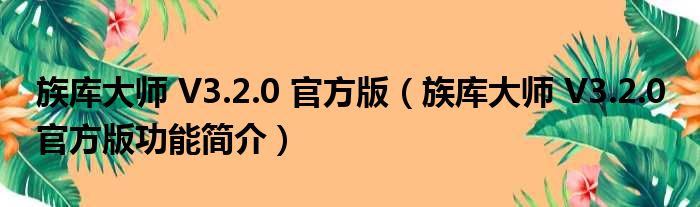 导读 大家好,关于族库大师 V3 2 0 官方版,族库大师 V3 2 0 官方版功能简介这个很多人还不知道,小勒来为大家解答以上的问题,现在让我们一起