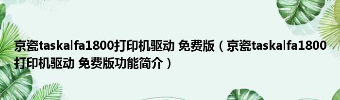 京瓷taskalfa1800打印机驱动 免费版(京瓷taskalfa1800打印机驱动 免费版功能简介)