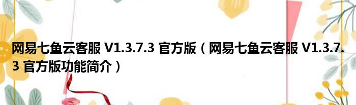 网易七鱼云客服 V1.3.7.3 官方版(网易七鱼云客服 V1.3.7.3 官方版功能简介)