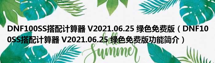 DNF100SS搭配计算器 V2021.06.25 绿色免费版(DNF100SS搭配计算器 V2021.06.25 绿色免费版功能简介)