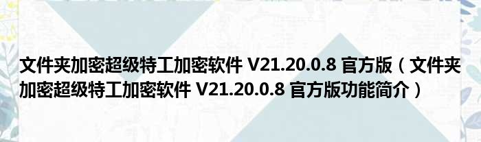 文件夹加密超级特工加密软件 V21.20.0.8 官方版(文件夹加密超级特工加密软件 V21.20.0.8 官方版功能简介)