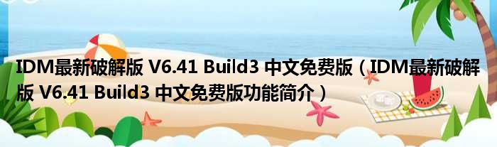 IDM最新破解版 V6.41 Build3 中文免费版(IDM最新破解版 V6.41 Build3 中文免费版功能简介)
