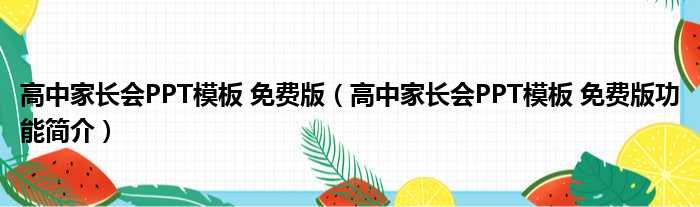 高中家长会PPT模板 免费版(高中家长会PPT模板 免费版功能简介)