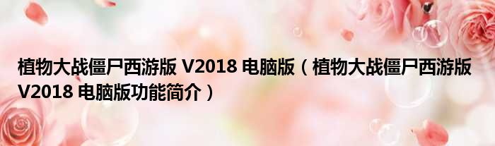 植物大战僵尸西游版 V2018 电脑版(植物大战僵尸西游版 V2018 电脑版功能简介)