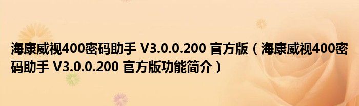 海康威视400密码助手 V3.0.0.200 官方版(海康威视400密码助手 V3.0.0.200 官方版功能简介)
