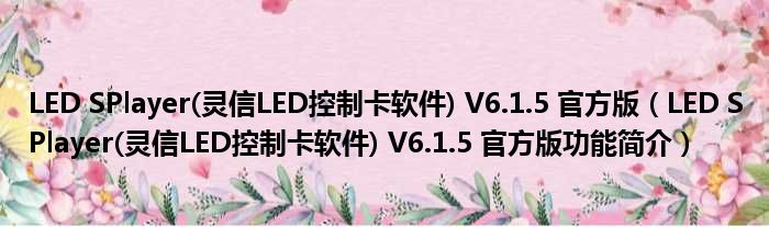 LED SPlayer(灵信LED控制卡软件) V6.1.5 官方版(LED SPlayer(灵信LED控制卡软件) V6.1.5 官方版功能简介)