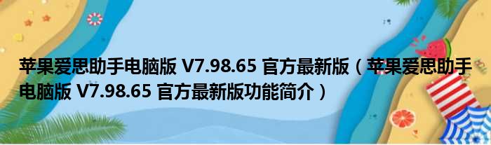 苹果爱思助手电脑版 V7.98.65 官方最新版(苹果爱思助手电脑版 V7.98.65 官方最新版功能简介)