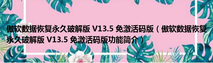 傲软数据恢复永久破解版 V13.5 免激活码版(傲软数据恢复永久破解版 V13.5 免激活码版功能简介)