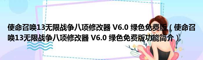 使命召唤13无限战争八项修改器 V6.0 绿色免费版(使命召唤13无限战争八项修改器 V6.0 绿色免费版功能简介)
