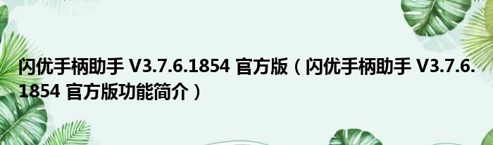 导读 大家好,关于闪优手柄助手 V3 7 6 1854 官方版,闪优手柄助手 V3 7 6 1854 官方版功能简介这个很多人还不知道,小勒来为大家解答以上的问