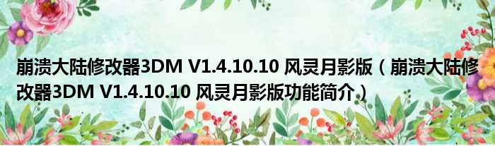 导读 大家好,关于崩溃大陆修改器3DM V1 4 10 10 风灵月影版,崩溃大陆修改器3DM V1 4 10 10 风灵月影版功能简介这个很多人还不知道,小勒来为