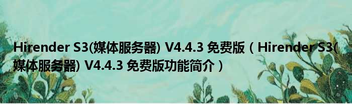 Hirender S3(媒体服务器) V4.4.3 免费版(Hirender S3(媒体服务器) V4.4.3 免费版功能简介)