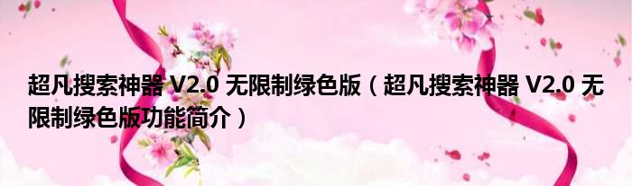 超凡搜索神器 V2.0 无限制绿色版(超凡搜索神器 V2.0 无限制绿色版功能简介)