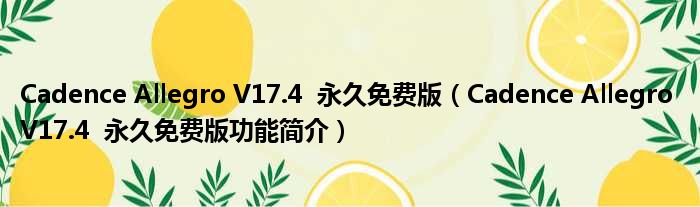Cadence Allegro V17.4 永久免费版(Cadence Allegro V17.4 永久免费版功能简介)