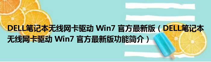 DELL笔记本无线网卡驱动 Win7 官方最新版(DELL笔记本无线网卡驱动 Win7 官方最新版功能简介)