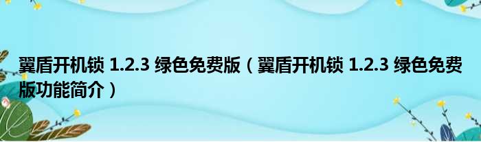 翼盾开机锁 1.2.3 绿色免费版(翼盾开机锁 1.2.3 绿色免费版功能简介)