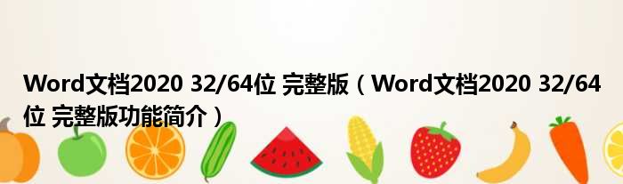 Word文档2020 32/64位 完整版(Word文档2020 32/64位 完整版功能简介)