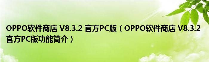 OPPO软件商店 V8.3.2 官方PC版(OPPO软件商店 V8.3.2 官方PC版功能简介)