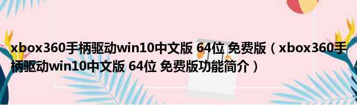 xbox360手柄驱动win10中文版 64位 免费版(xbox360手柄驱动win10中文版 64位 免费版功能简介)