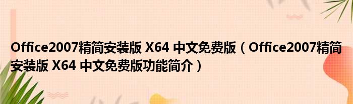 Office2007精简安装版 X64 中文免费版(Office2007精简安装版 X64 中文免费版功能简介)
