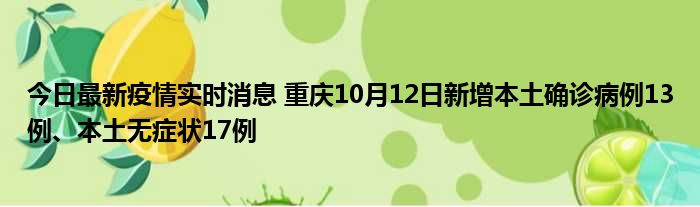 您的位置:首页 >房产频道 > 综合精选 > 今日最新疫情实时消息 重庆10月12日新增本土确诊病例13例、本土无症状17例 2022-10-13 16:46:05 • 来源: 导读 免责声明:本文由用户上传,如有侵权请联系删除! 上一篇:今日最新疫情实时消息 宁波昨日新增确诊病例1例,为省外重点地区返甬人员 下一篇:今日最新疫情实时消息 内蒙古一高校已有39人被确诊为阳性感染者,校党委书记被免职