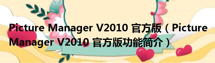 Picture Manager V2010 官方版(Picture Manager V2010 官方版功能简介)