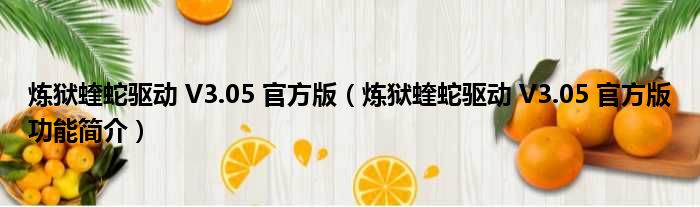 炼狱蝰蛇驱动 V3.05 官方版(炼狱蝰蛇驱动 V3.05 官方版功能简介)