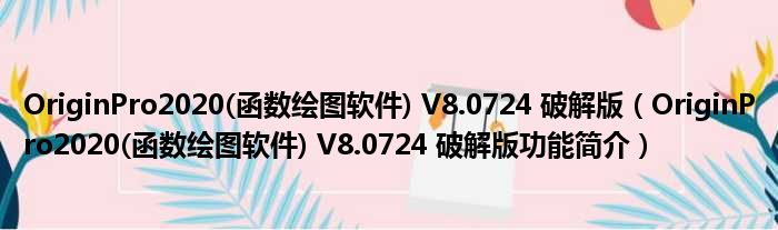OriginPro2020(函数绘图软件) V8.0724 破解版(OriginPro2020(函数绘图软件) V8.0724 破解版功能简介)