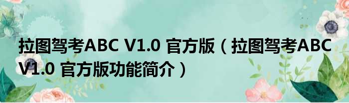 导读 大家好,关于拉图驾考ABC V1 0 官方版,拉图驾考ABC V1 0 官方版功能简介这个很多人还不知道,小勒来为大家解答以上的问题,现在让我们一