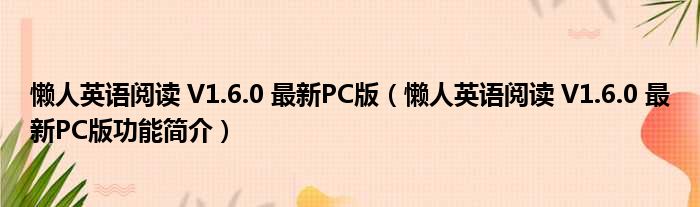 导读 大家好,关于懒人英语阅读 V1 6 0 最新PC版,懒人英语阅读 V1 6 0 最新PC版功能简介这个很多人还不知道,小勒来为大家解答以上的问题,现