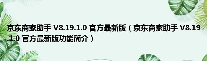 京东商家助手 V8.19.1.0 官方最新版(京东商家助手 V8.19.1.0 官方最新版功能简介)