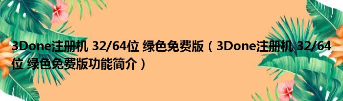 3Done注册机 32/64位 绿色免费版(3Done注册机 32/64位 绿色免费版功能简介)