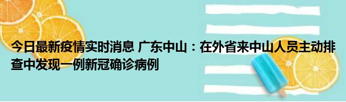 今日最新疫情实时消息 广东中山:在外省来中山人员主动排查中发现一例新冠确诊病例
