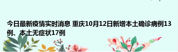 您的位置:首页 >房产频道 > 综合精选 > 今日最新疫情实时消息 重庆10月12日新增本土确诊病例13例、本土无症状17例 2022-10-13 20:14:05 • 来源: 导读 免责声明:本文由用户上传,如有侵权请联系删除! 上一篇:结尾段的作用结构上和内容上(结尾段的作用) 下一篇:朱顶红和君子兰哪个品种最贵(君子兰哪个品种最贵)