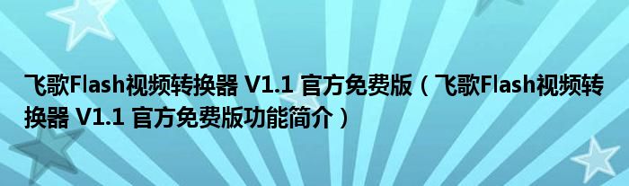 飞歌Flash视频转换器 V1.1 官方免费版(飞歌Flash视频转换器 V1.1 官方免费版功能简介)