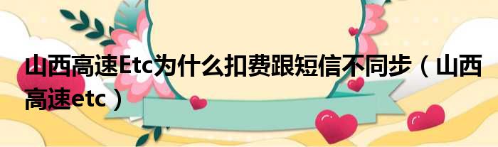 山西高速Etc为什么扣费跟短信不同步(山西高速etc)
